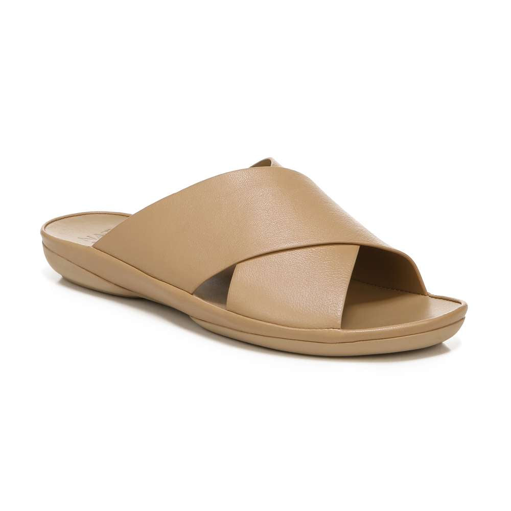 From our Gen N collection // The new dress code. You’ll love the simplicity of this minimal slide sandal with oversized crisscross straps. Get there beautifully.