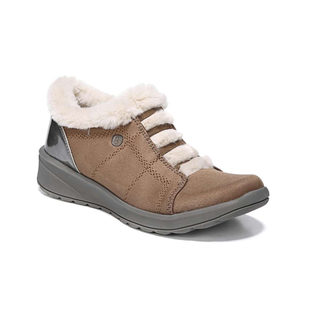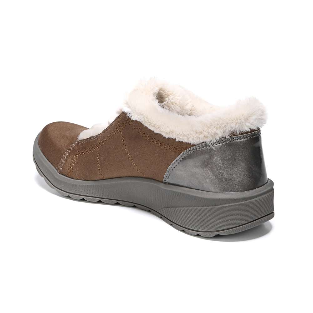 • Stretch fabric upper with faux fur lining in a casual bootie style with a round toe
